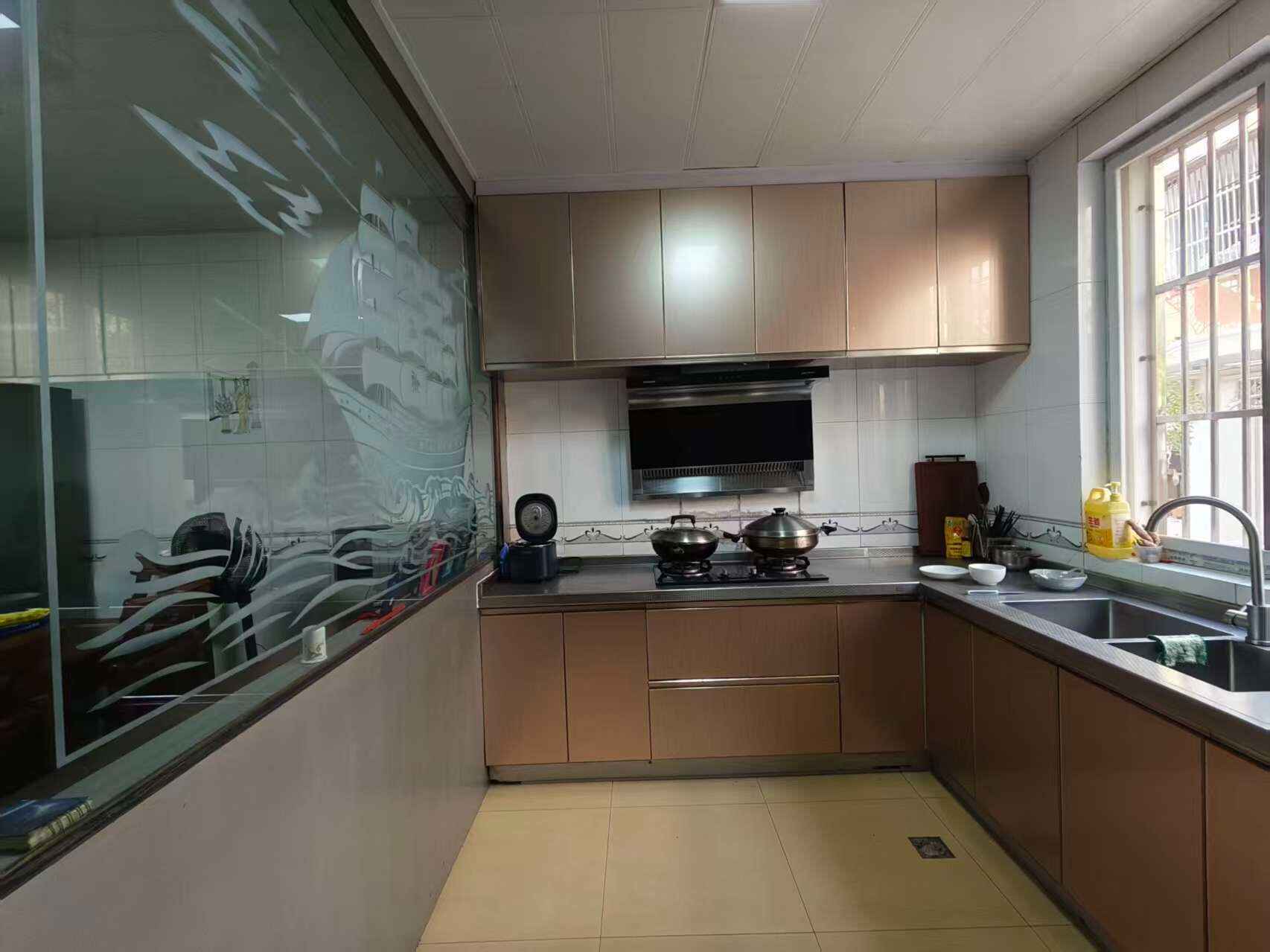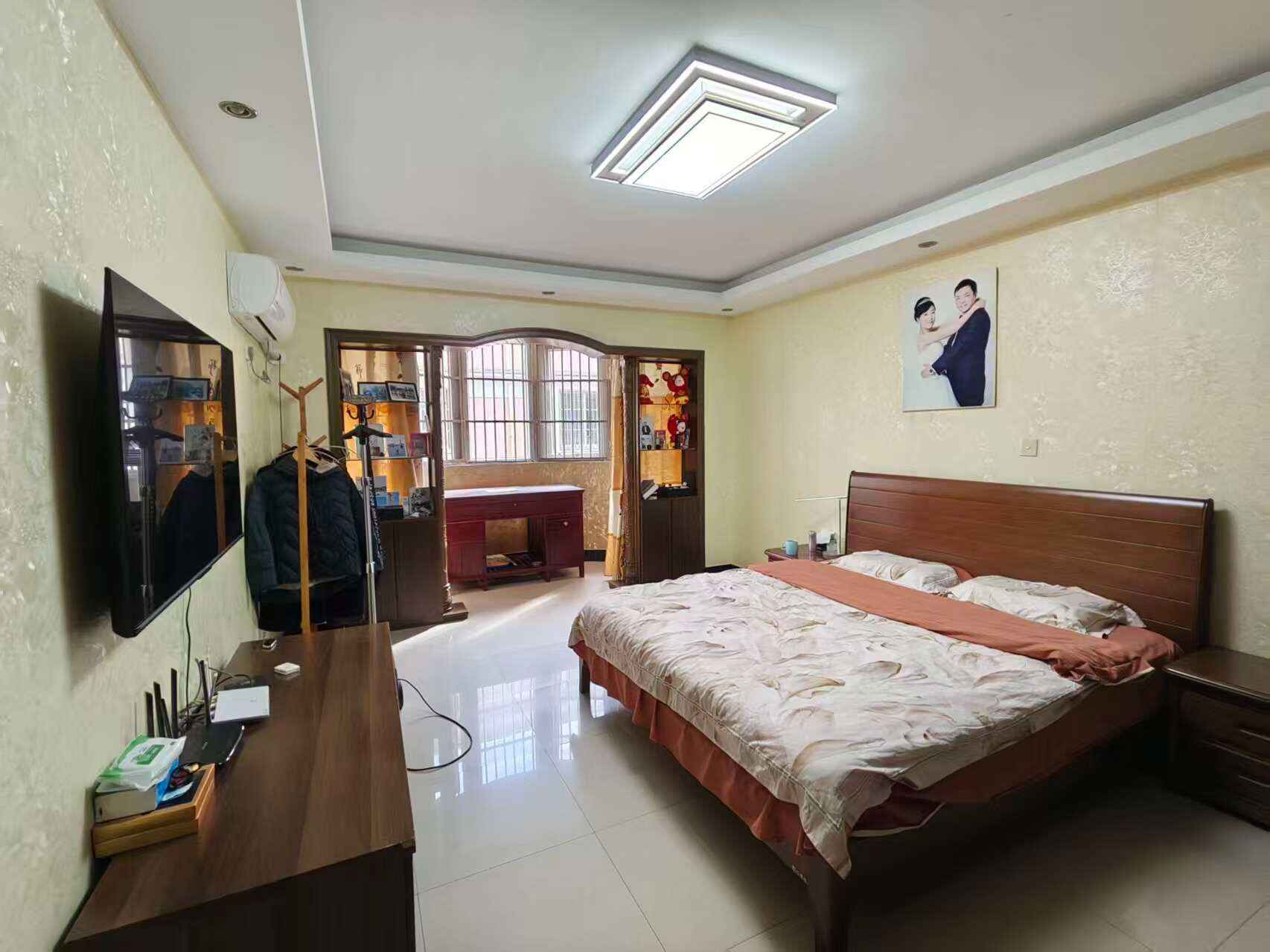 上海花园100平米三房精装修,飞机户型三面朝南,一次未住,紧靠黄中最佳位置